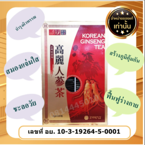 ชาโสมเกาหลีแท้ 100 % มี อย เรียบร้อยเเล้ว KOREAN ONE GINSENG TEA 1 กล่องใหญ่ มี 100 ซอง